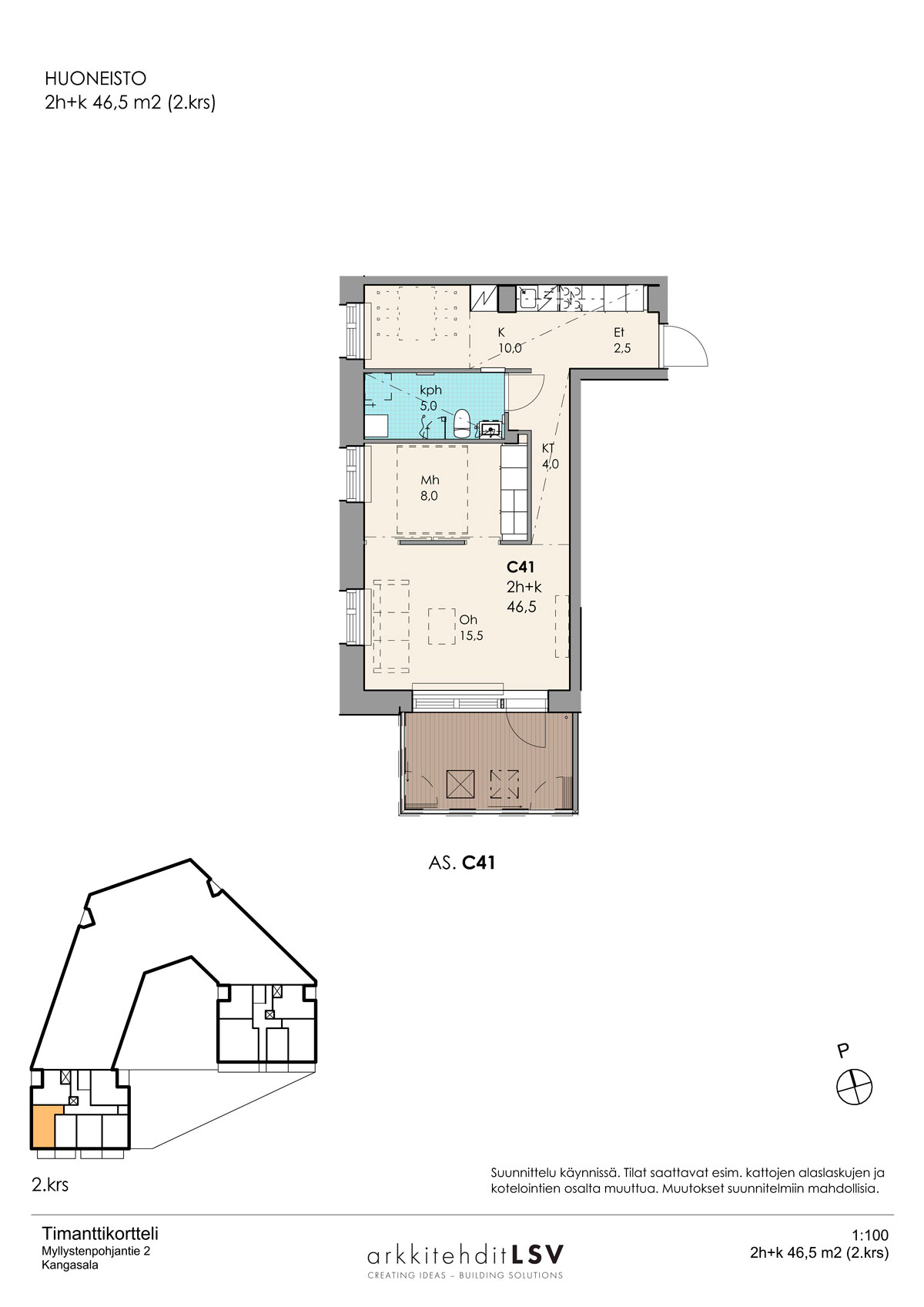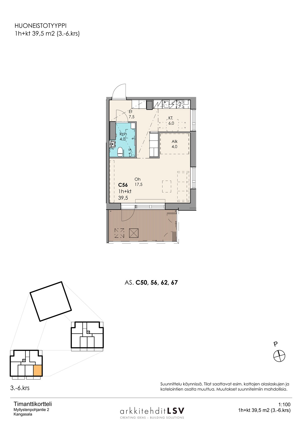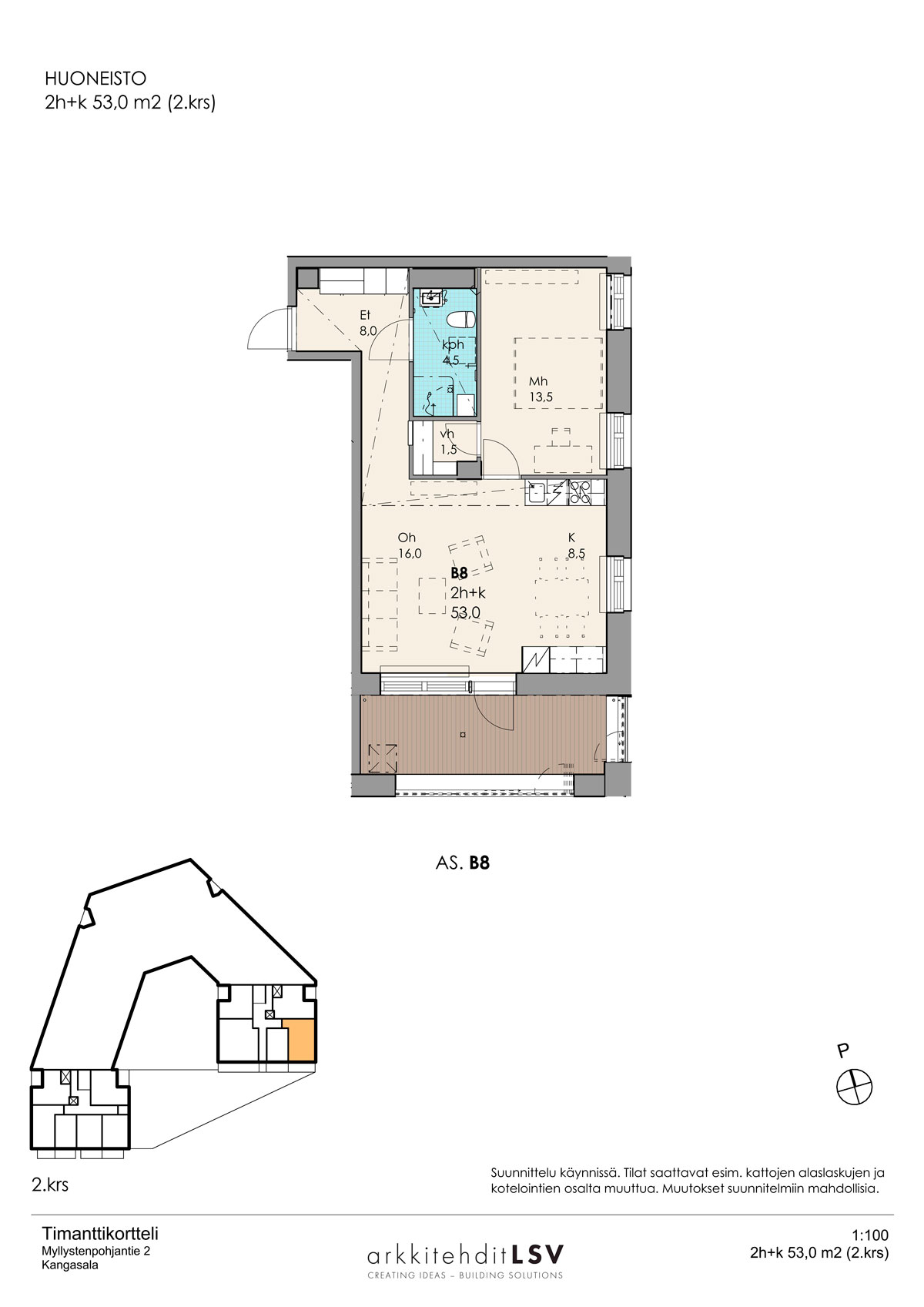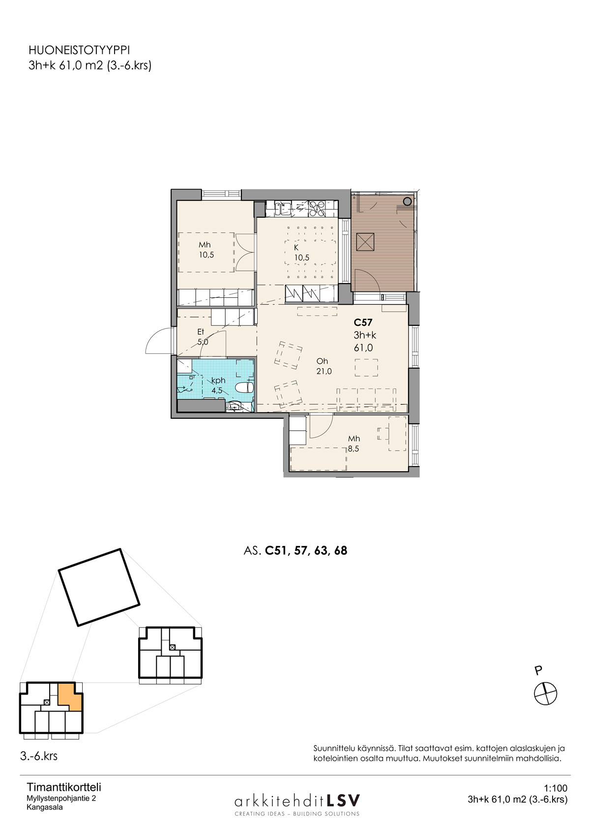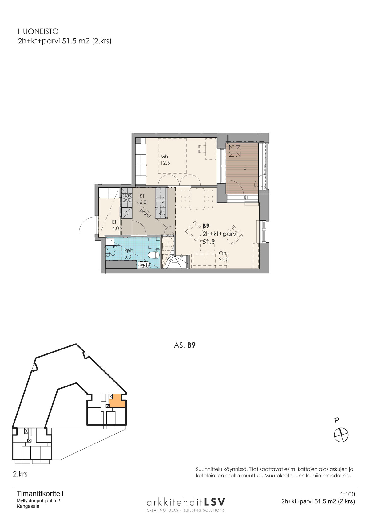 Modernia asumista ilmeikkäässä ja arkkitehtonisesti korkeatasoisessa rakennuskokonaisuudessa palveluista ja liikkuvuudesta tinkimättä; niin kevyt kuin ajoneuvoliikennekin suttaantuu nätisti tästä sijainnista. 63 vuokrakotia, joissa neliöt on laitettu tehokkaasti töihin mutta mielikuvitustakin on käytetty, mm. toisen kerroksen parvellisissa asunnoissa.